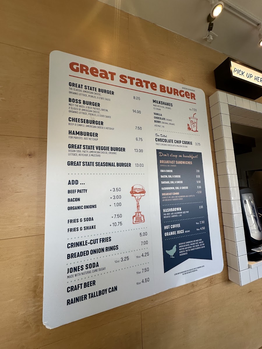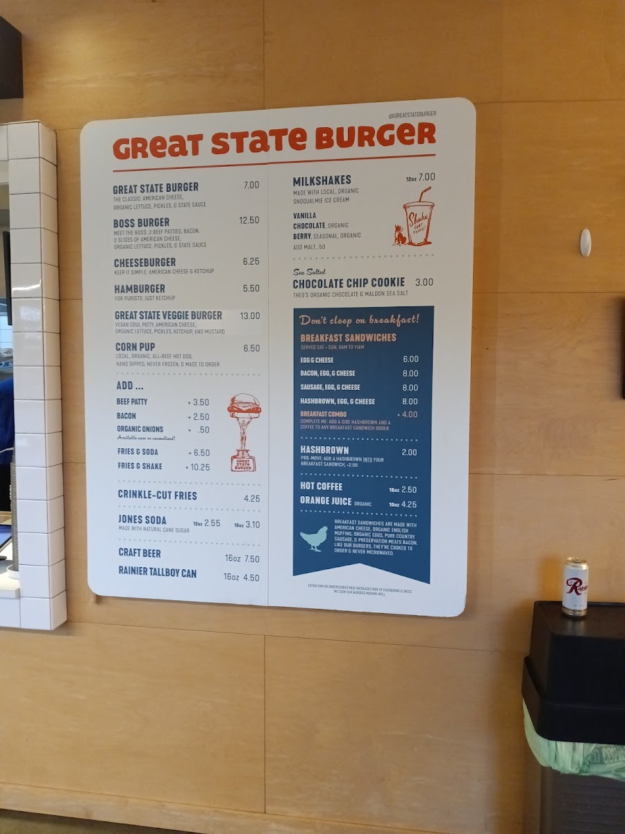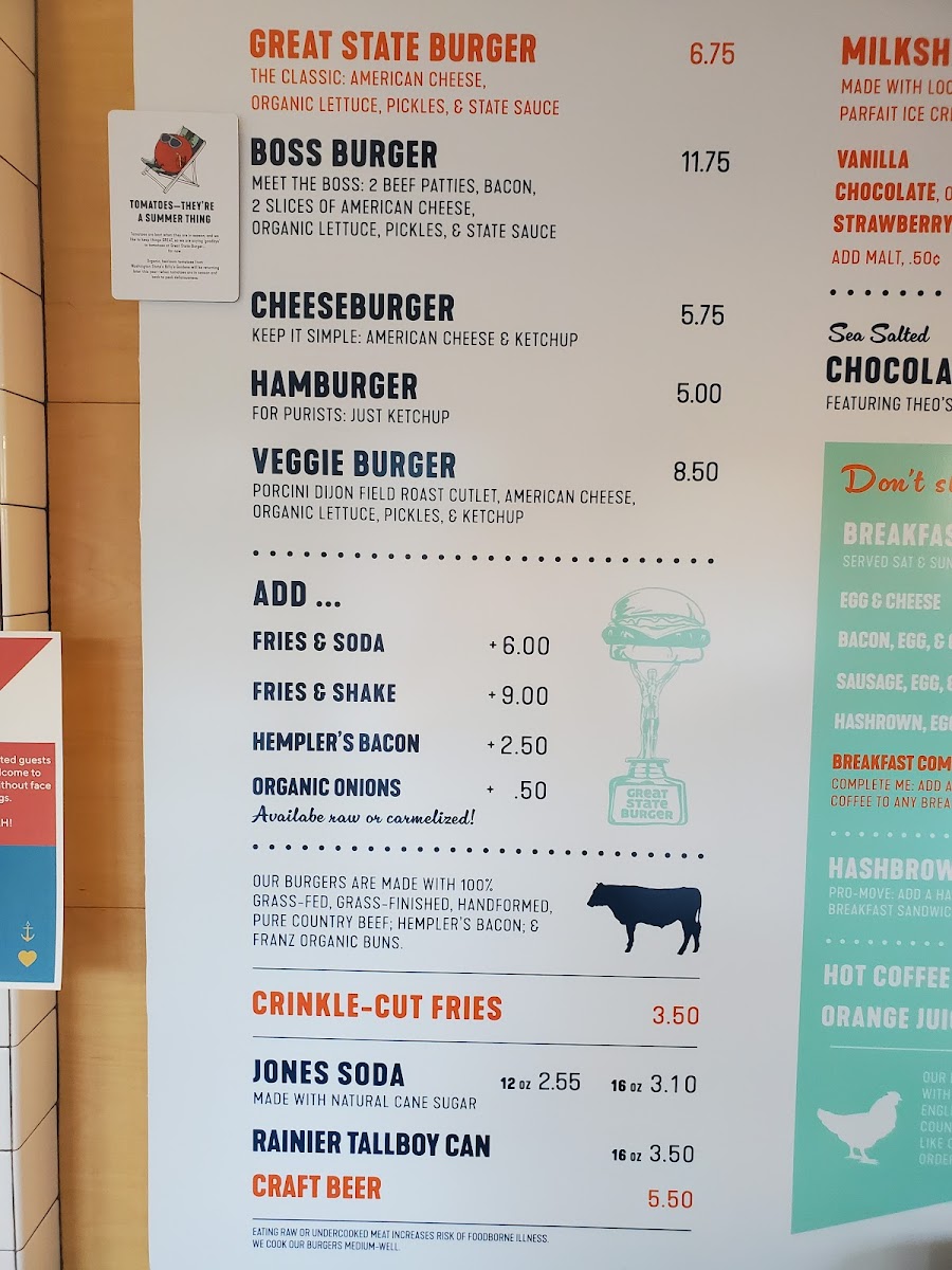 Located in the heart of Seattle, Great State Burger is a haven for burger enthusiasts. Their commitment to quality shines through in every dish. The menu starts with a delightful selection of breakfast sandwiches, featuring organic ingredients like the sausage, egg, and cheese on a buttered English muffin for just $12. Each item is crafted with care, ensuring freshness and flavor.